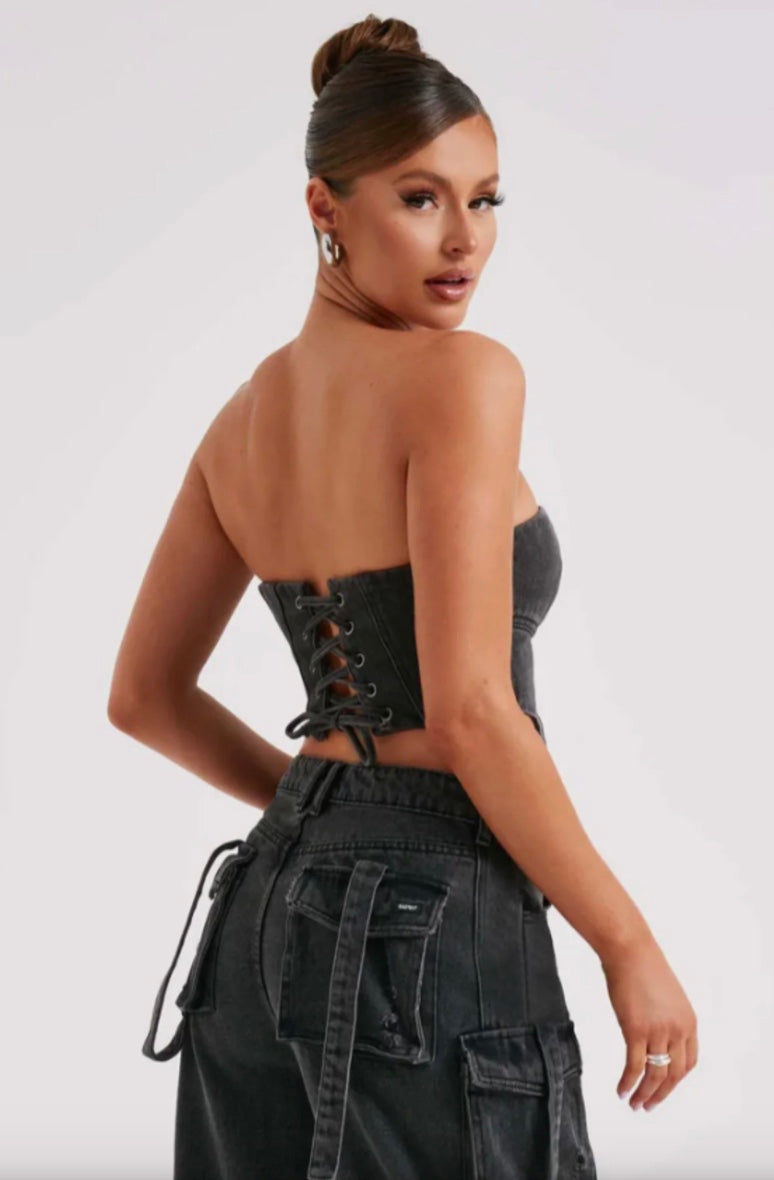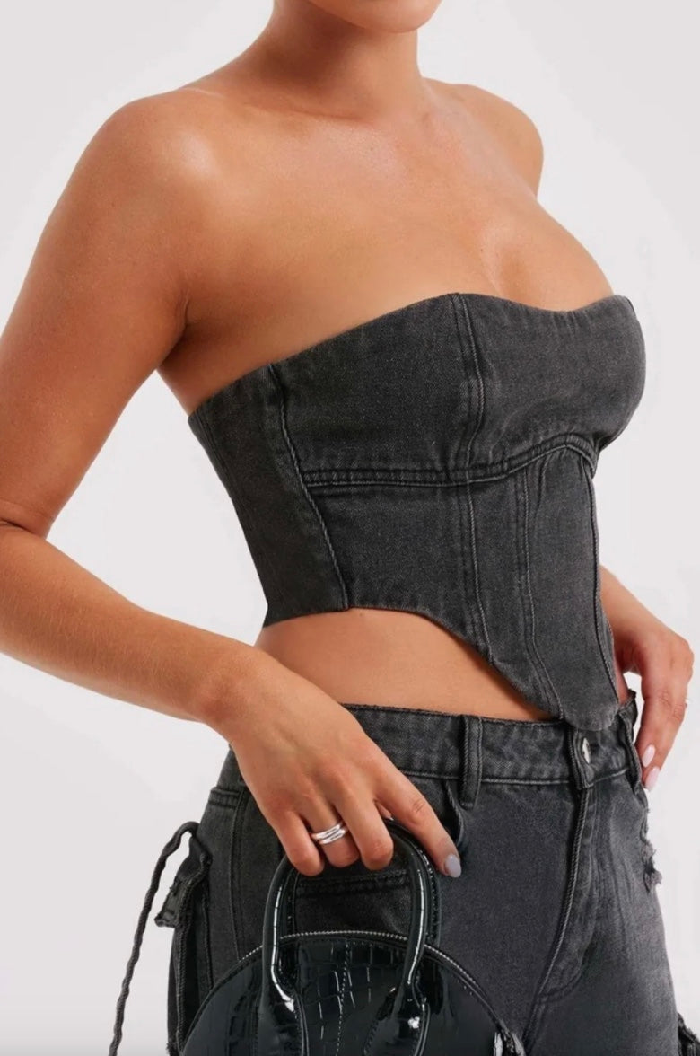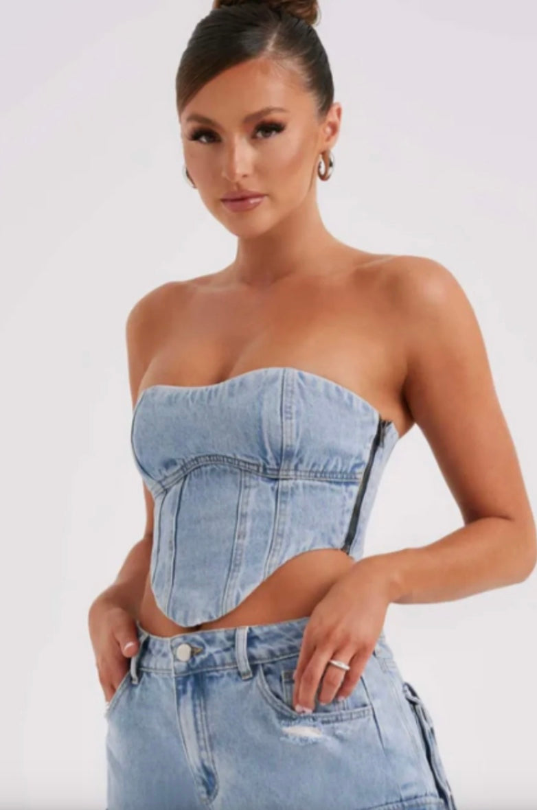 De Noa Denim Top combineert stoere denim met een flatterend corsetdesign. Perfect voor elke gelegenheid – draag het chic met een blazer of casual met je favoriete jeans. Een must-have voor een trendy look!