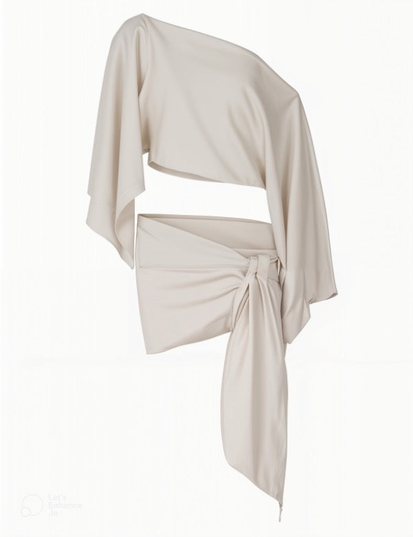 De Serene Straps Set biedt de perfecte balans tussen stijl en comfort. Met de elegante lange mouw top en strakke rok creëer je moeiteloos een chique en verfijnde look voor elke gelegenheid.